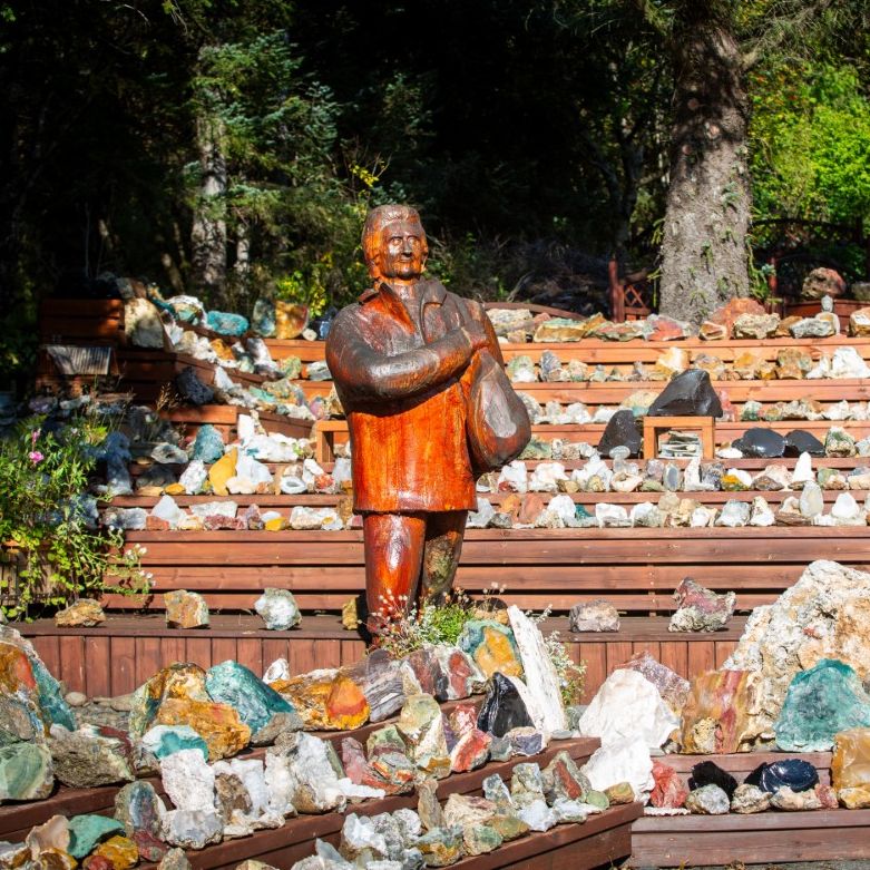 Af áratuga elju og natni byggði hún upp safn sem inniheldur þúsundir steina, hver með sína sögu, lit og lögun. Glitrandi bergkristallar, litfagrir jaspisar, sérkennilegir geislasteinar og gljáandi biksvartar hrafntinnur taka á móti gestum innan um blómskrúð garðsins.